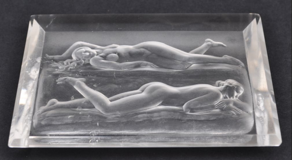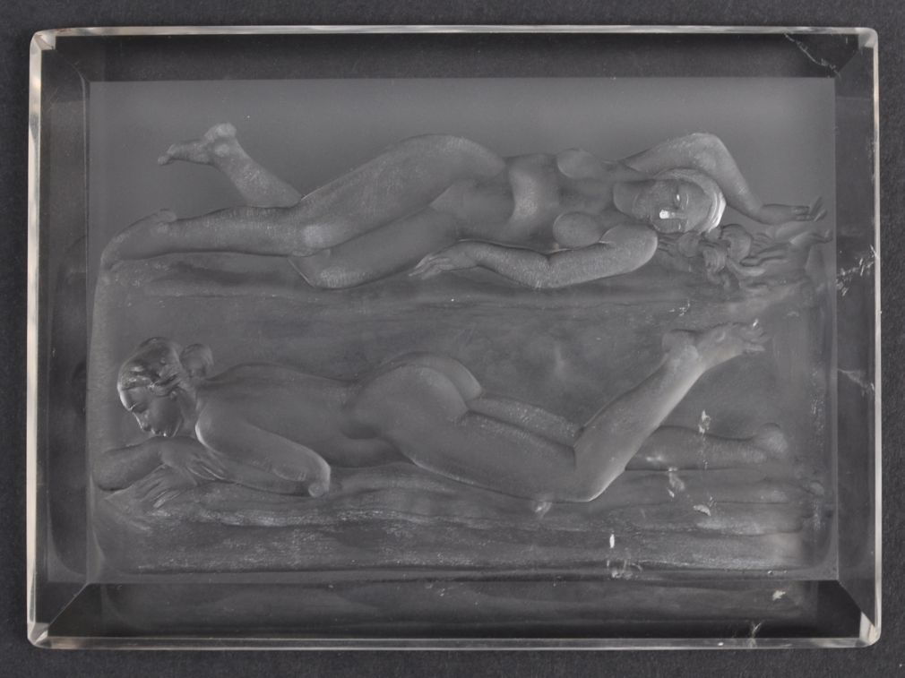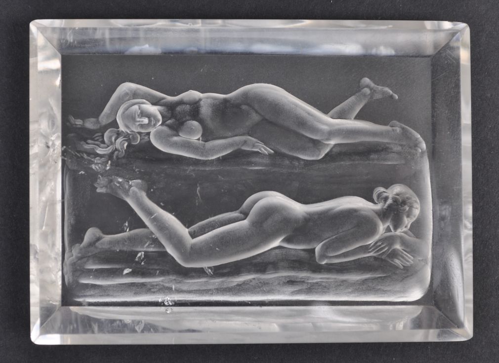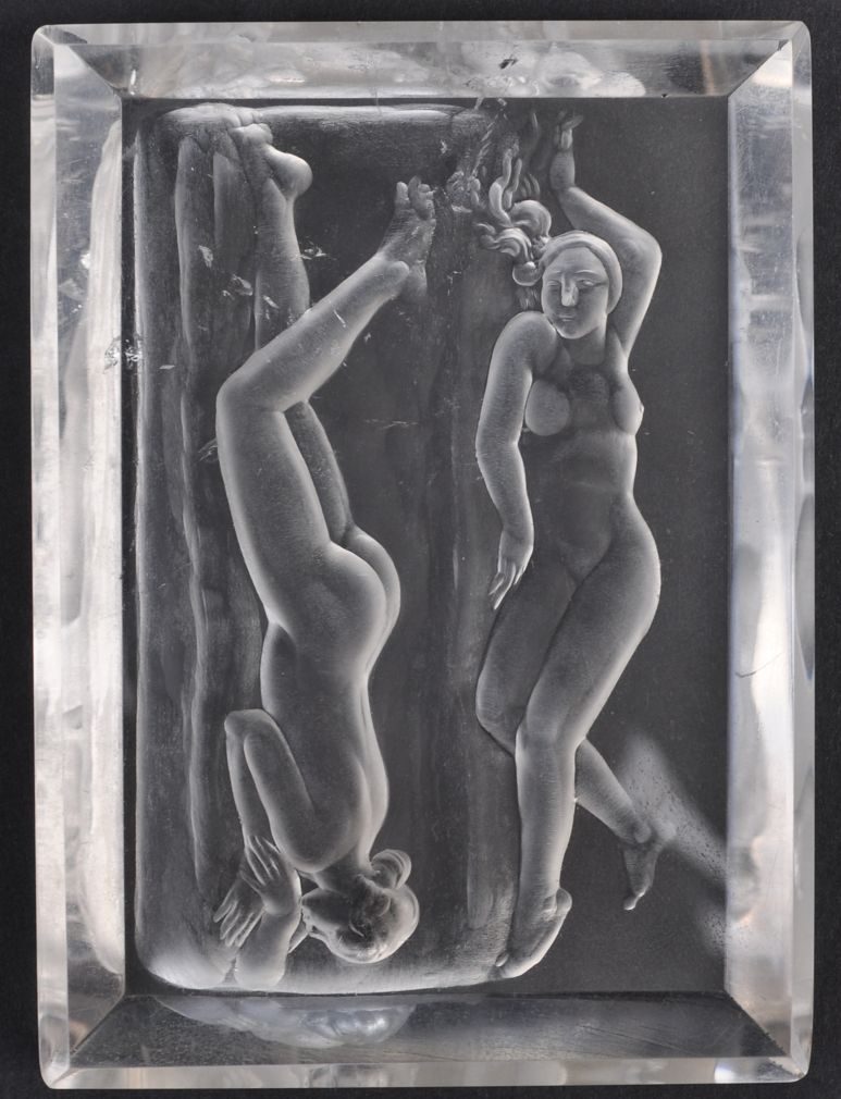 unikátní velká intaglie v mohutném krystalu horského křišťálu, přírodní inkluze, Československo, kolem roku 1930, délka 9,8 cm, šířka 7,2 cm, výška 1,2 cm; Josef Drahoňovský (1877-1938), významný glyptik a všestranný výtvarný umělec, mnohokrát oceněný a zastoupený ve sbírkách králů, papežů a ve světových muzeích; z rodinné pozůstalosti; sběratelsky zajímavé; publikováno v knize Dílo Josefa Drahoňovského z r. 1933
