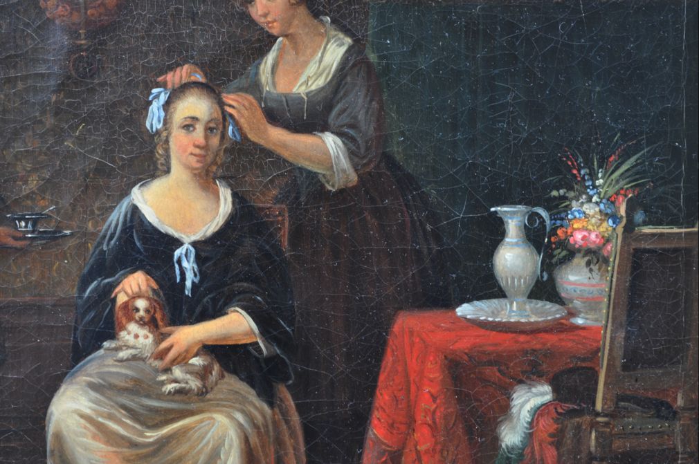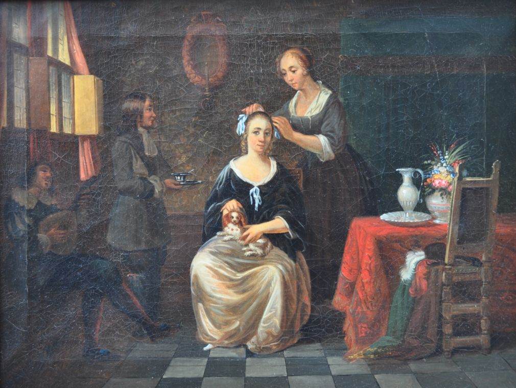 žánrová scéna holandského typu, olejomalba na plátně, bez rámu 31,2x41 cm, s rámem 43,7x53,3cm