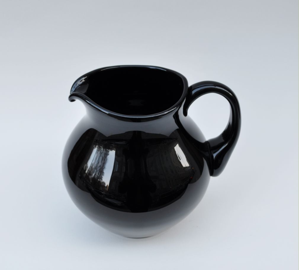 výjimečný džbán z černého hyalitového skla, Čechy, 19. století, zcela intaktní stav, výška 17,5 cm, průměr 15 cm