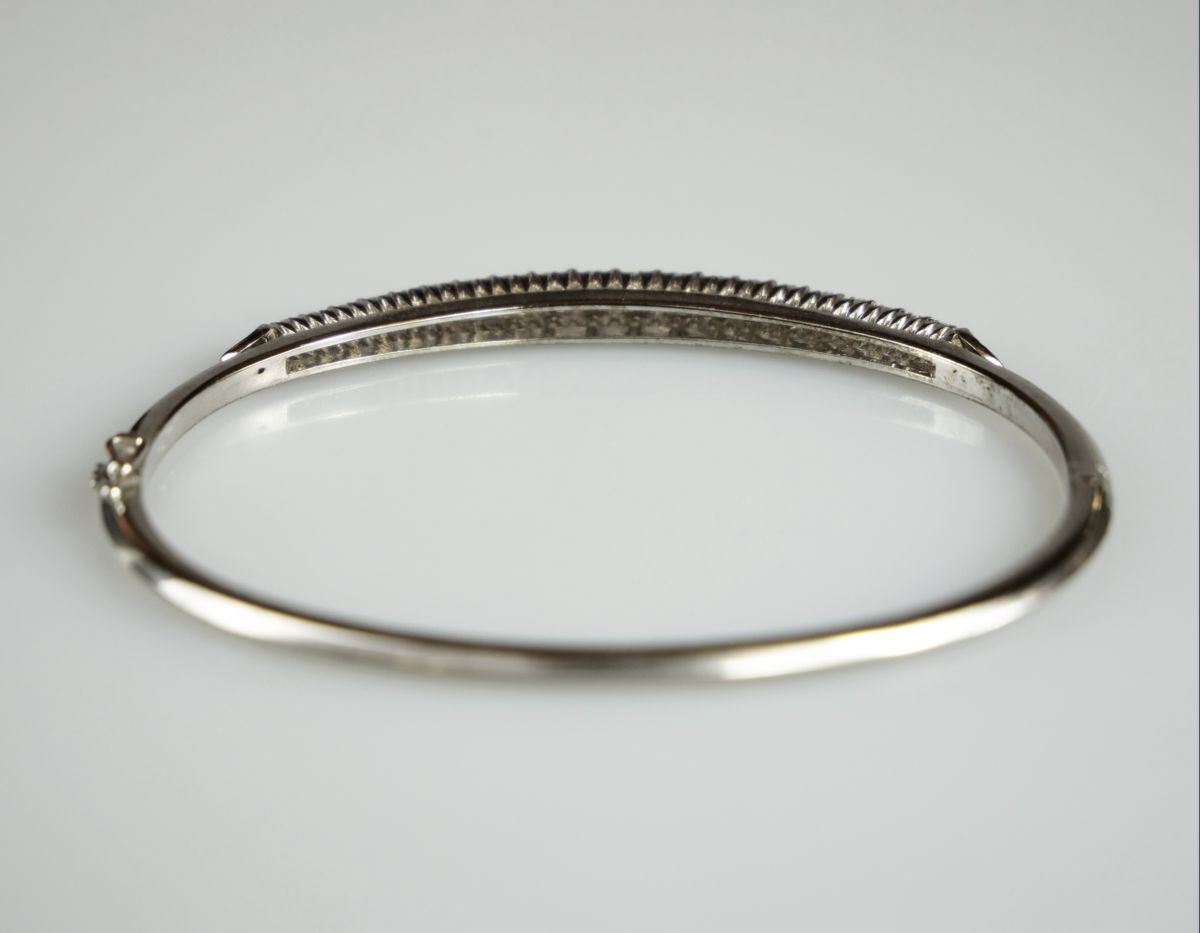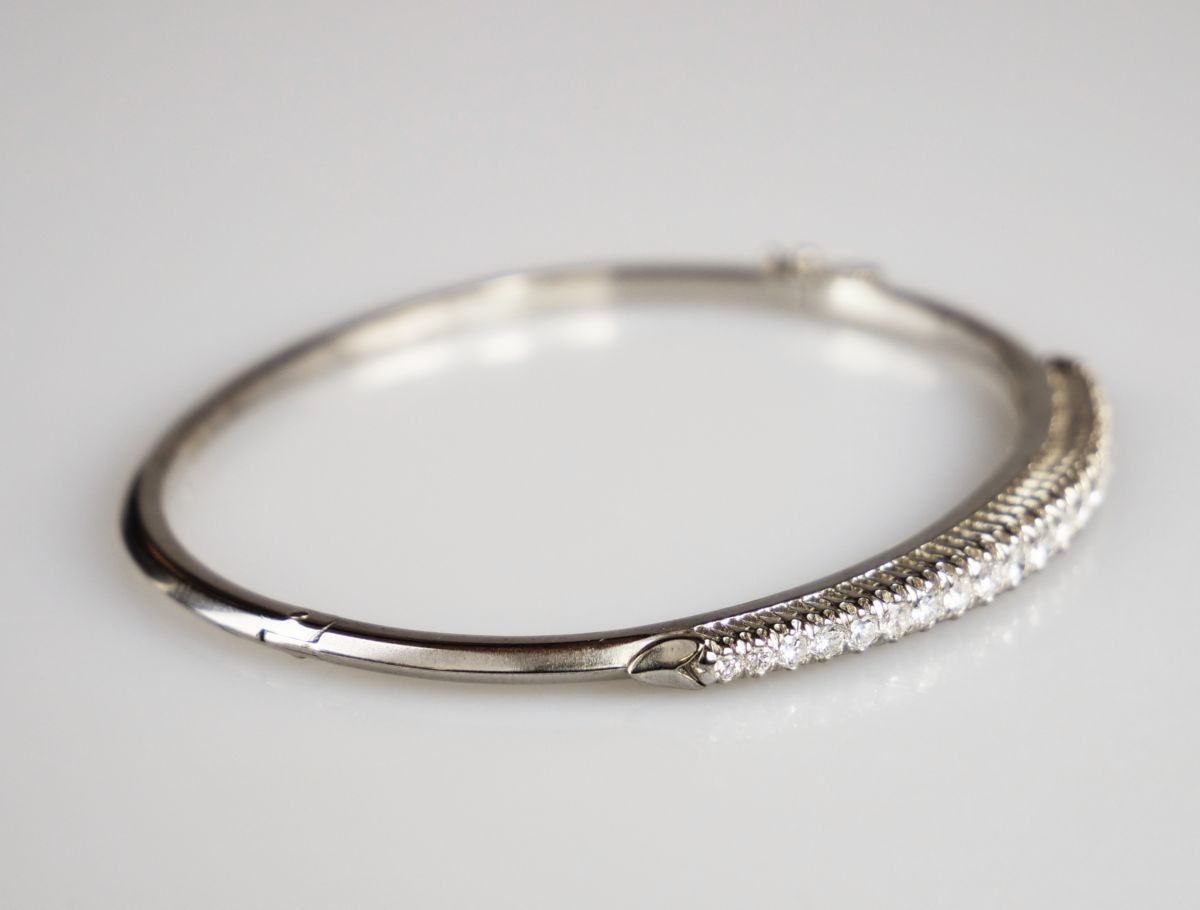 zlatý náramek s diamanty briliantového brusu o celkové hmotnosti cca 0,85 ct, Au 14,55 g/750/1000, západní Evropa, kolem r. 1990, pozdější puncovní značka (kohout); průměr 6,2 cm