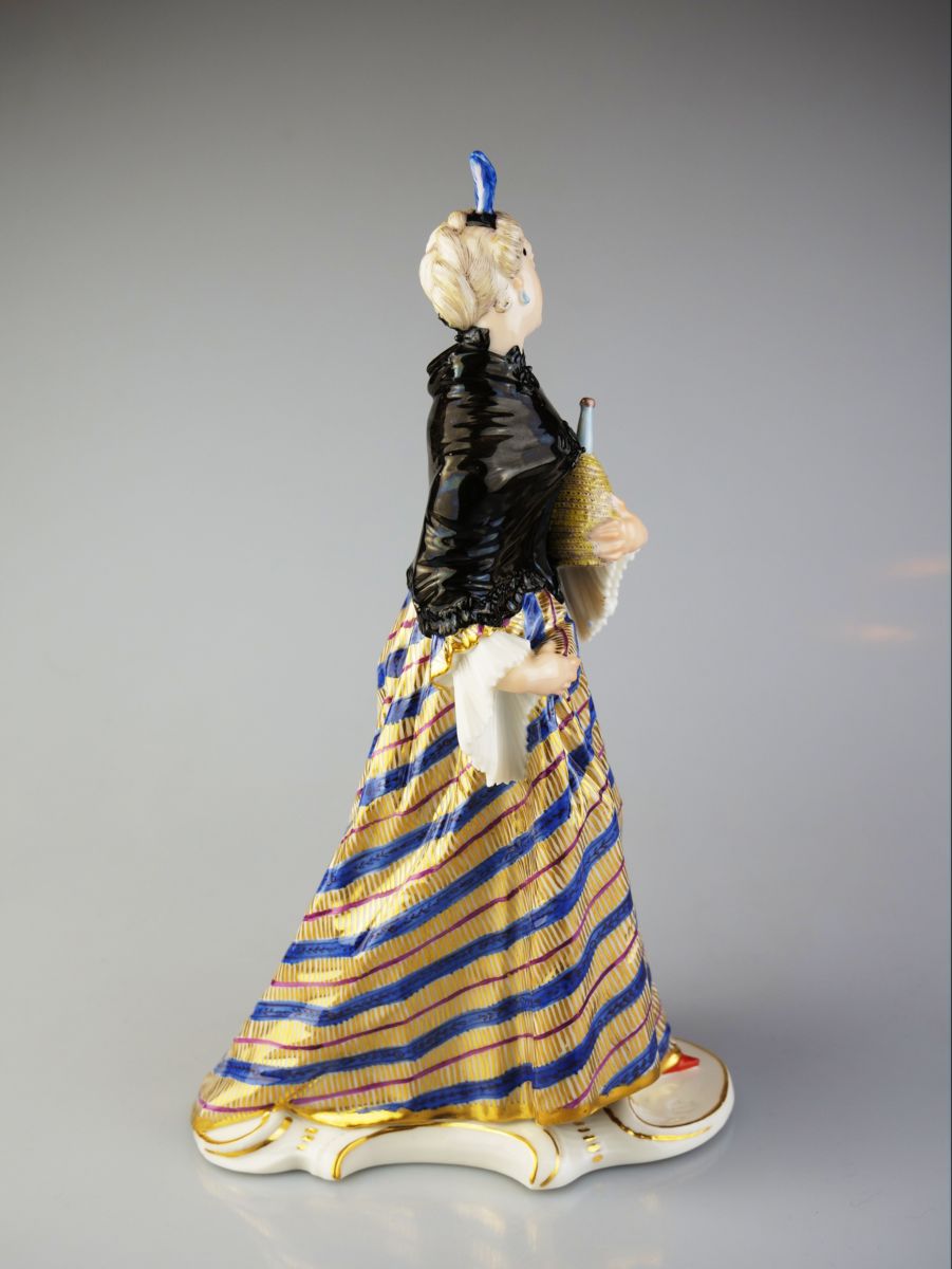 porcelánová soška ”Donna Martina” z ”commedia dell’arte”, podle rokokového modelu Franze Antona Bustelliho (1723 - 1763) vyrobila německá porcelánka Nymphenburg, provedení kolem r. 1860, značeno; výška 19,5 cm; drobná oprava