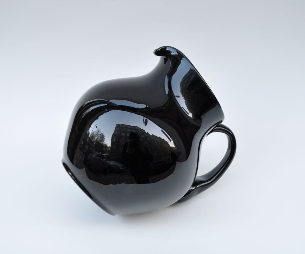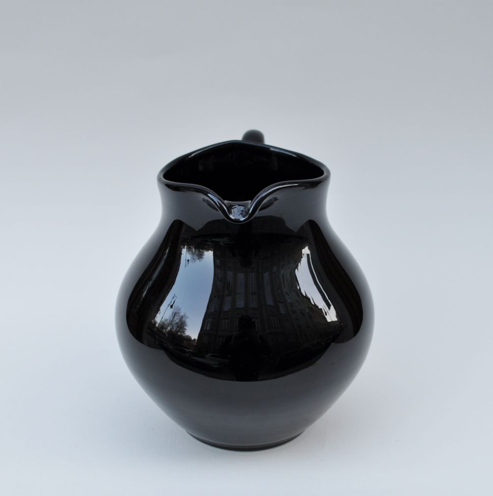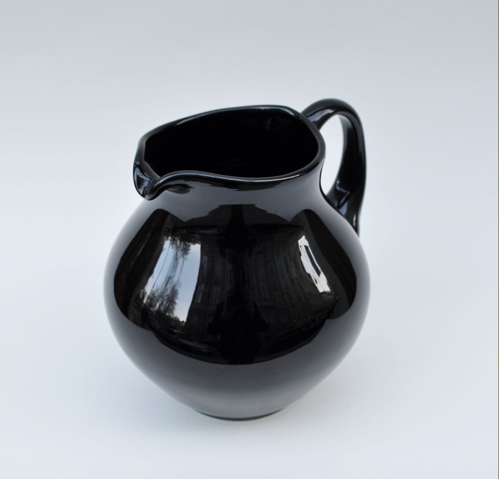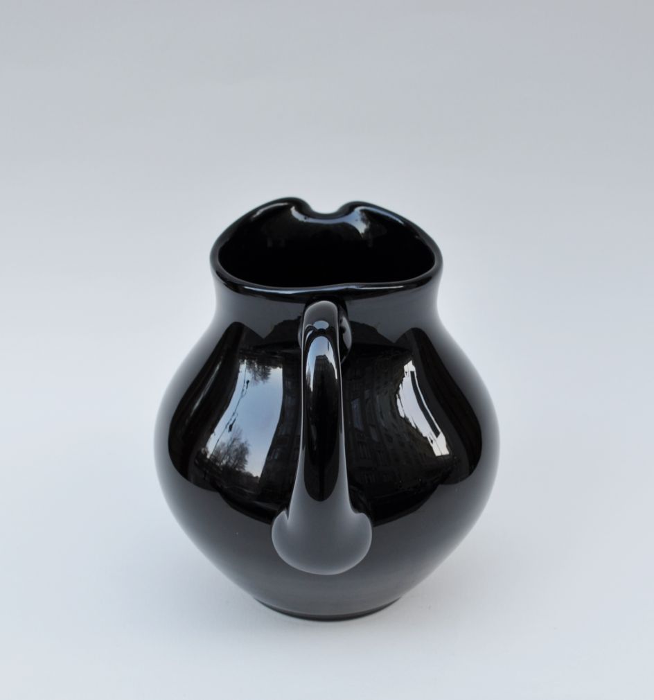 výjimečný džbán z černého hyalitového skla, Čechy, 19. století, zcela intaktní stav, výška 17,5 cm, průměr 15 cm