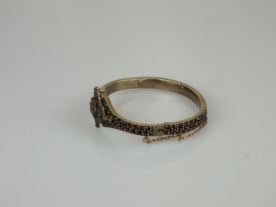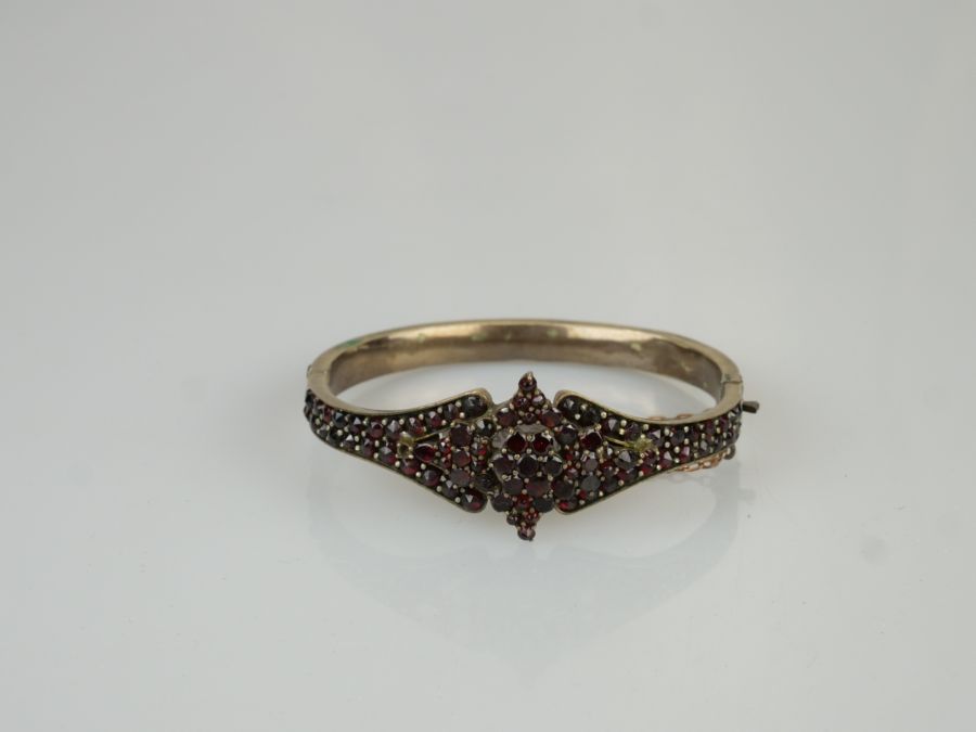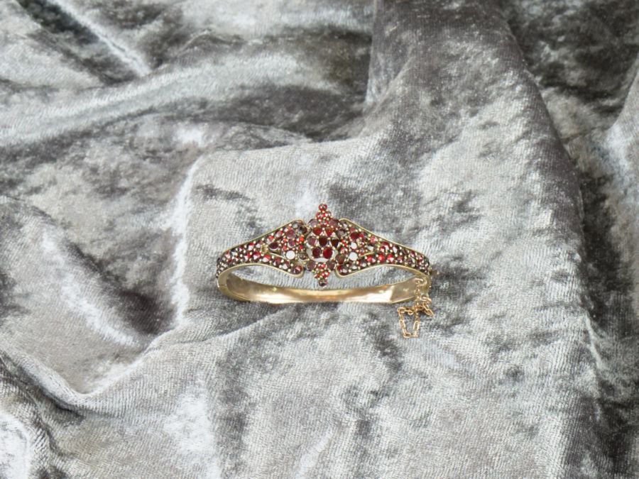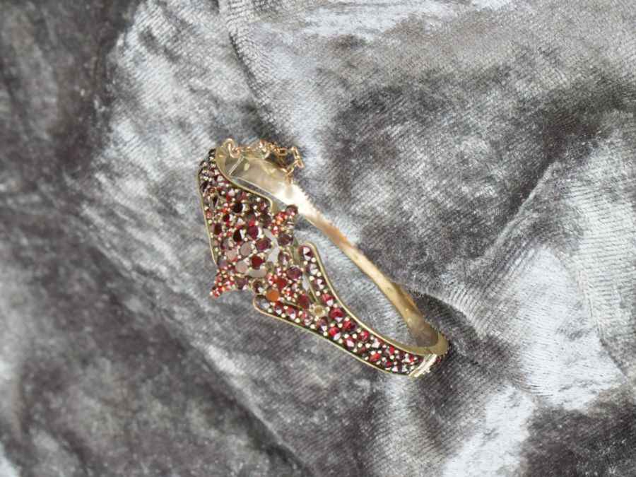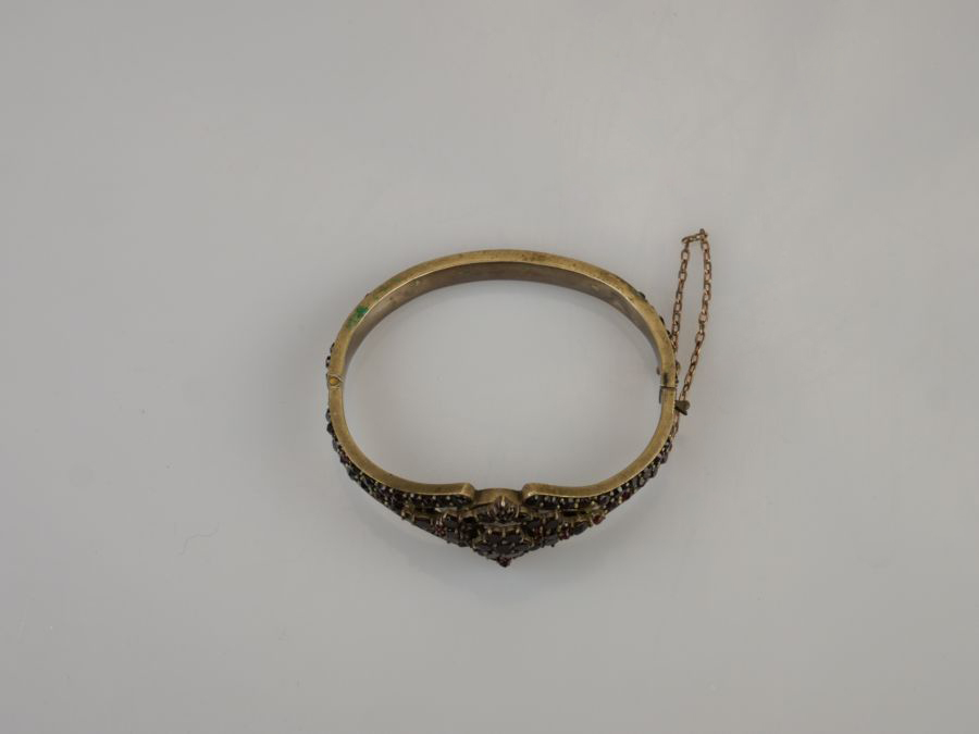 náramek s českými granáty vsazenými v tombaku, Čechy, kolem roku 1900; průměr 5,5 cm