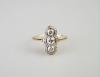 art deco zlatý prsten se třemi diamanty briliantového brusu o celkové hmotnosti cca 0,29 ct, kameny vsazené v platině, Au+Pt 1,30 g/540+950/1000, střední Evropa, kolem r. 1935, rozměry hlavy 0,7 x 1,4 cm; atest Puncovního úřadu; velikost prstenu 50