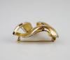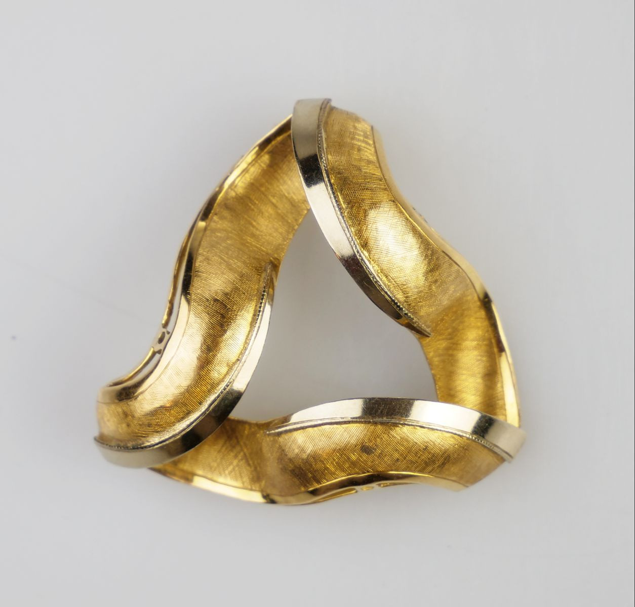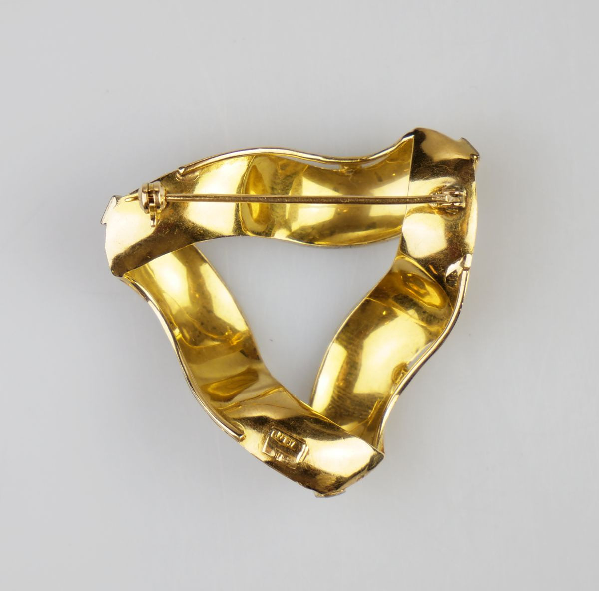 Zlatá brutalistní brož s rytým šrafováním a leštěnými okraji, Au btto 9,97g/585/1000, osvědčení Puncovního úřadu, Itálie 80. léta 20. stol.