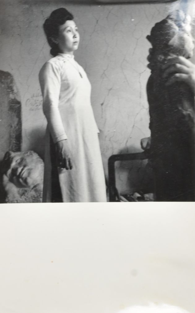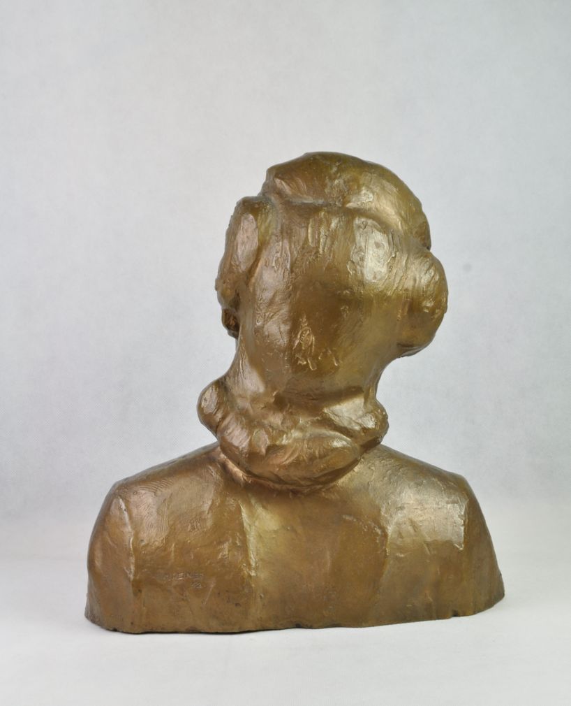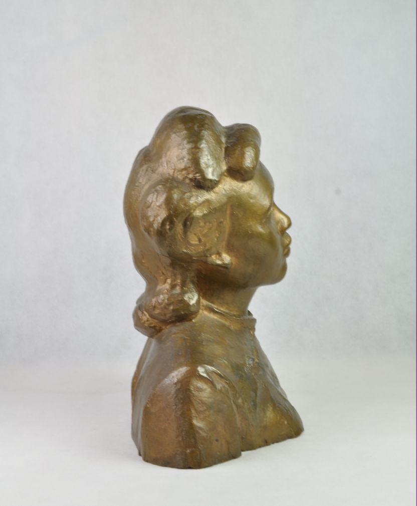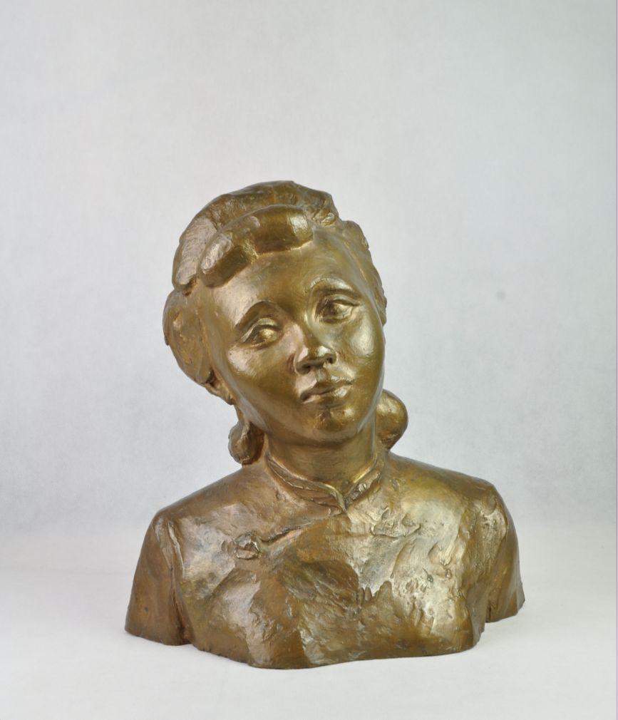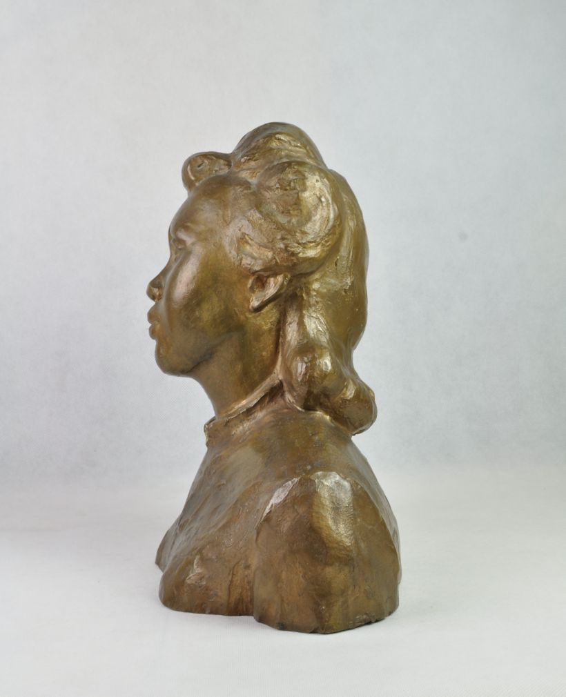 bronzová busta vietnamské klavírní virtuózky Lien Dan, vytvořená sochařem Martinem Reinerem, signováno, datováno 1952; přiložené fotografie virtuózky a sochaře pořídil známý umělecký fotograf Tibor Honty; výška 30 cm, délka 25 cm, hloubka 15 cm
