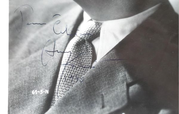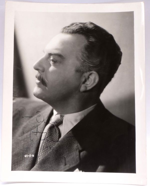 dobová fotografie herce Otomara Korbeláře s věnováním, reklamní ateliérová fotografie, Protektorát Čechy a Morava, rok 1940, rozměry 30 x 24 cm; sběratelsky zajímavé
