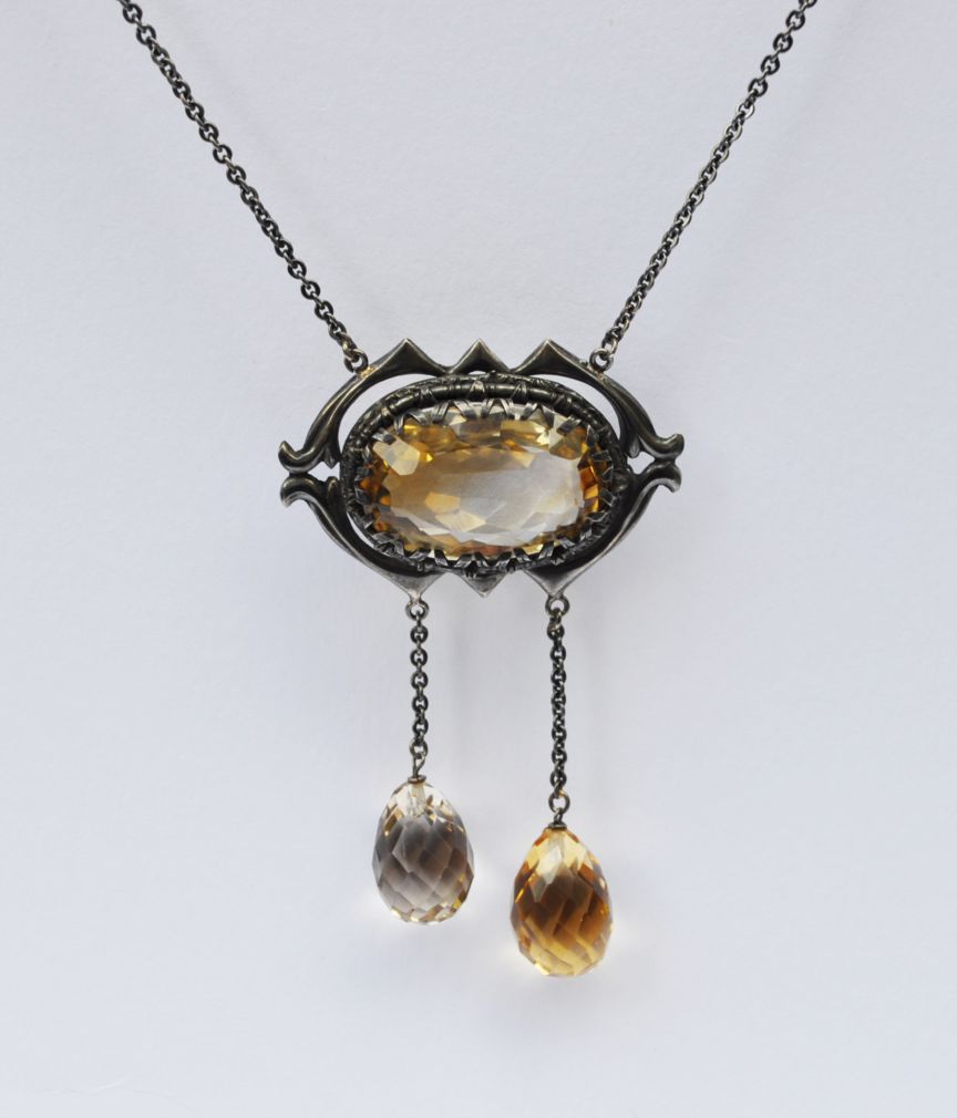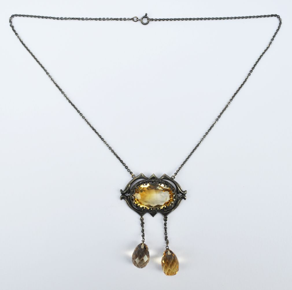 stříbrný kolier s velkými broušenými citríny, Ag 22,24g/925/000, kolem roku 1935, československý punc; délka řetízku bez závěsu 44 cm