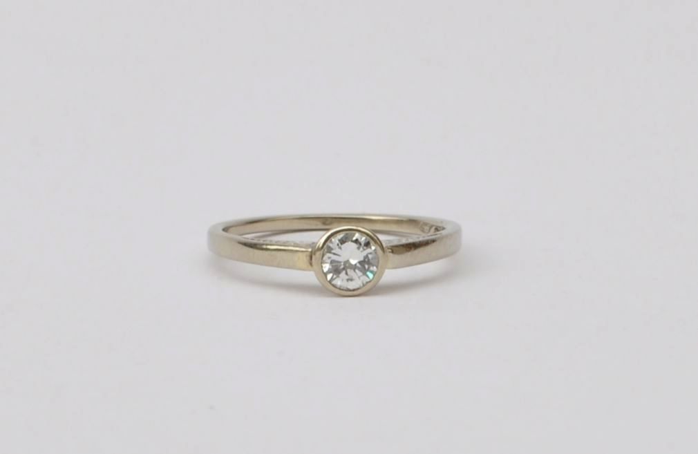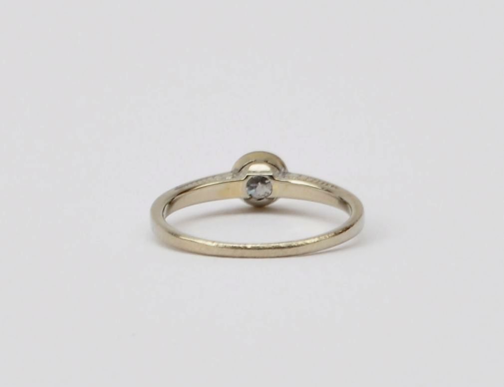 prsten z bílého zlata s kvalitním solitérním diamantem briliantového brusu o váze cca 0,25 ct, Au btto 1,91g/585/000, Československo, kolem roku 1925; velikost prstenu 54