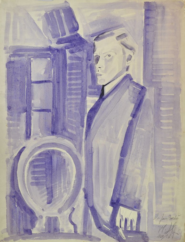výjimečný fauvisticko-kubistický portrét rodinného přítele Dr. Bartoše, práce galerijní kvality, z rodiny autora, akvarel na papíře, signováno, datováno 1918; nerámováno; rozměr: 48,7 x 38,2 cm