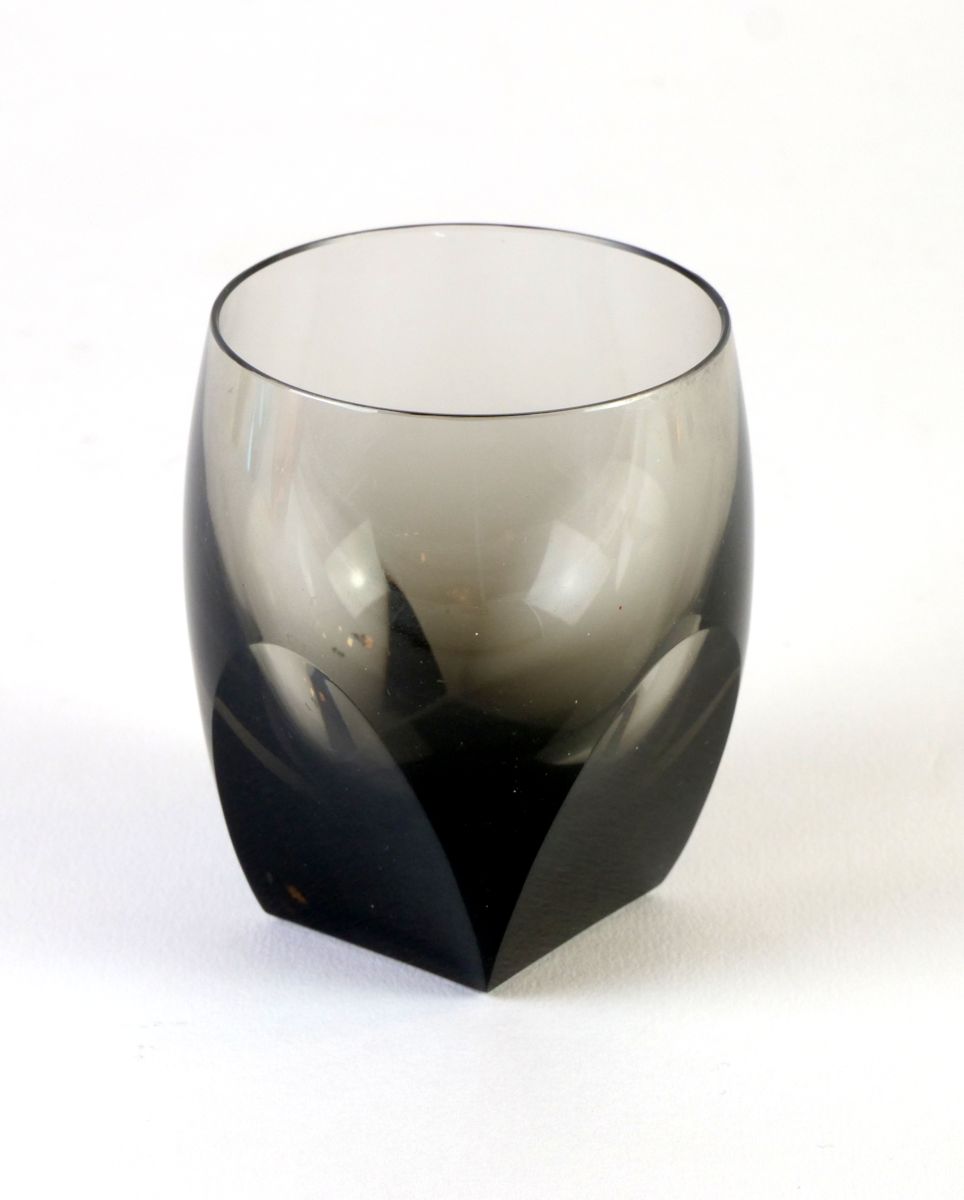 šest art deco likérových kalíšků z různě barevného broušeného skla, model z r. 1934, design Rudolf Eschler, značeno Moser, Československo, výška 7,5 cm, průměr 6 cm; z majetku evropsky proslulého umělce