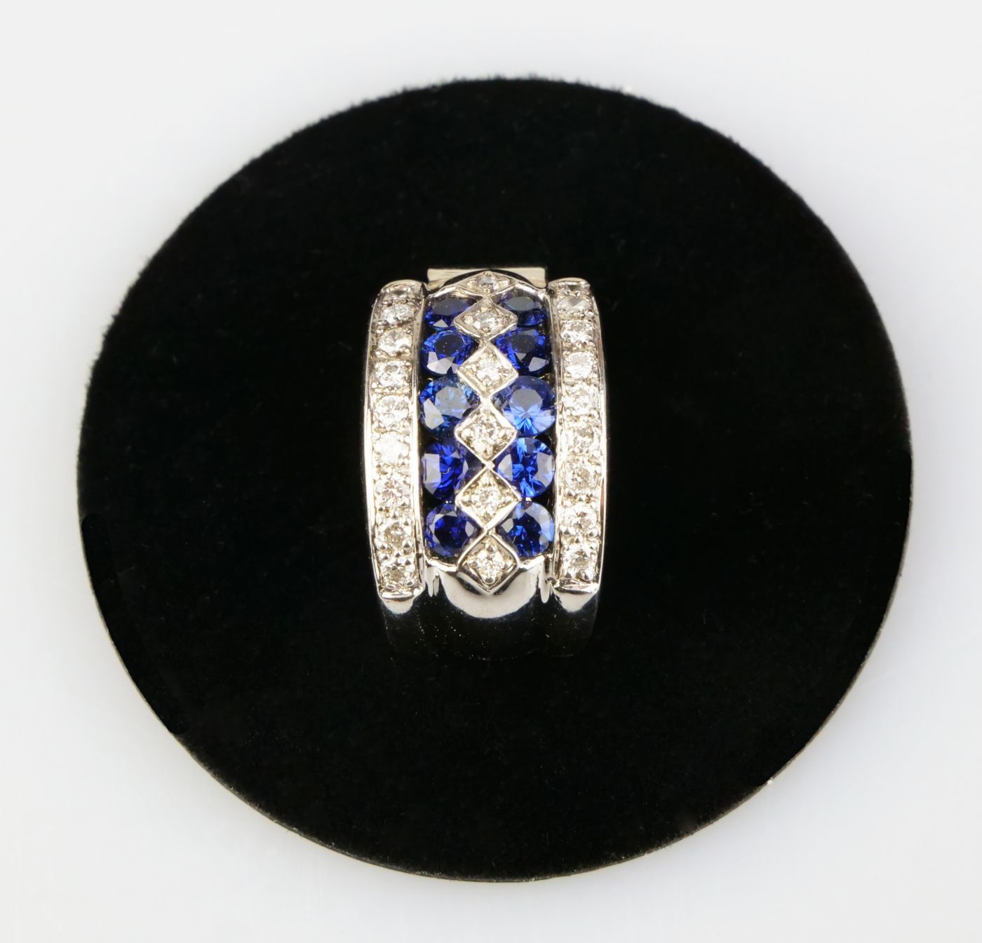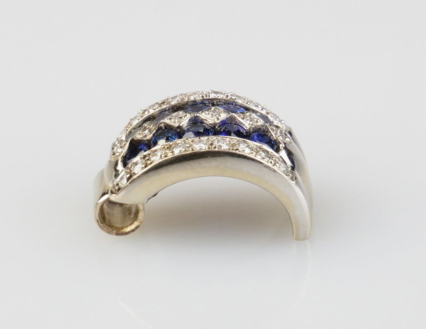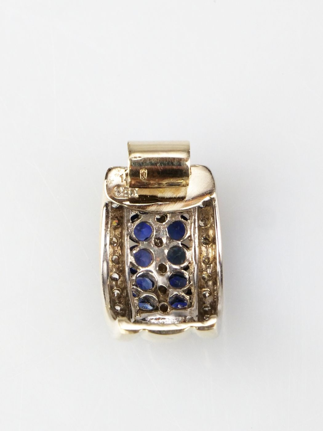 zlatý přívěšek se safíry a diamanty, Au btto 4,84g/585/1000, diamanty briliantového brusu velmi dobré kvality o hmotnosti 0,37ct, safíry o hmotnosti 0,37 ct, Severní Amerika, kolem r. 1990, značeno CEI - značka významného prodejce šperků z oblasti Karibiku, pozdější český punc; znalecký posudek