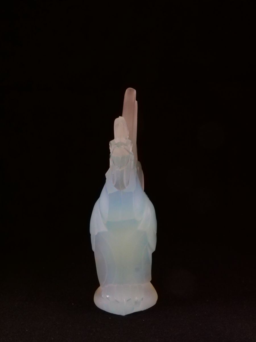 art deco plastika kohouta z výrazně probarveného opálového skla, ”car mascot”, pařížská sklárna Sabino, kolem roku 1930, značeno, výška 19 cm, délka 17,5 cm; francouzský sklářský výtvarník a podnikatel italského původu Marius-Ernest Sabino (1878-1961); sběratelsky zajímavé