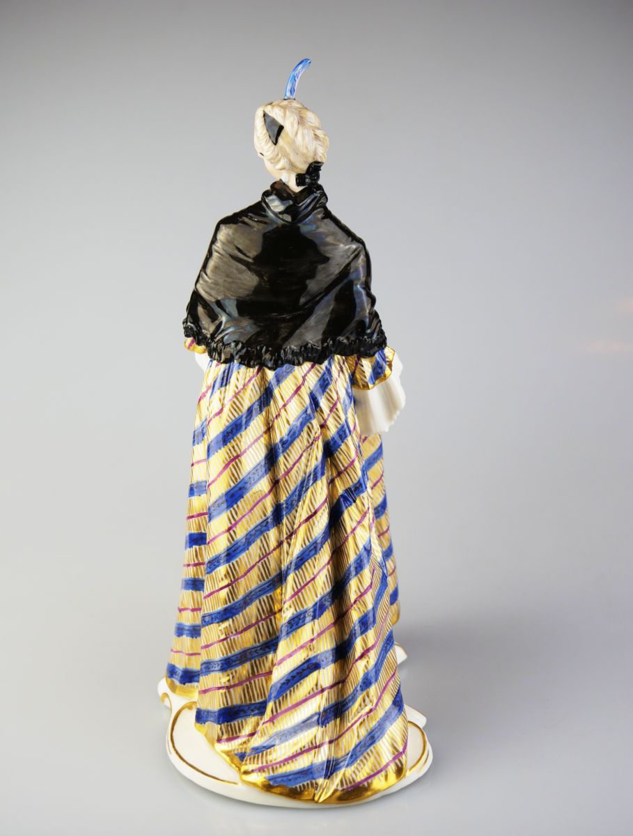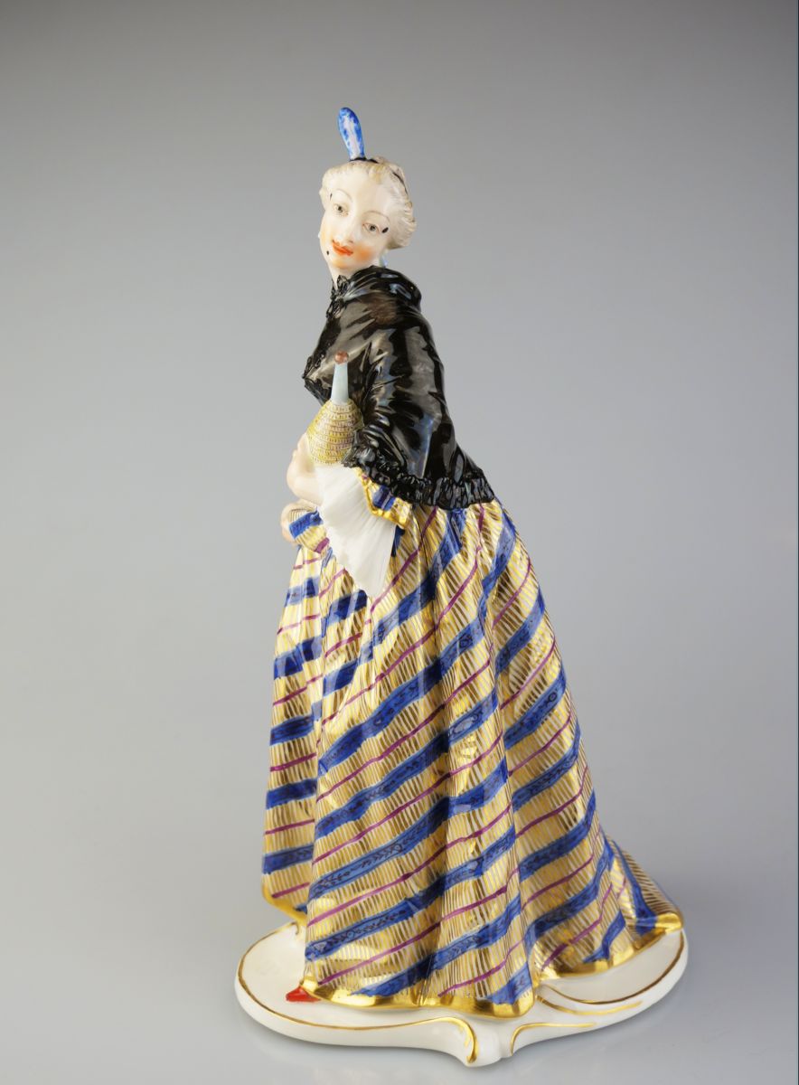 porcelánová soška ”Donna Martina” z ”commedia dell’arte”, podle rokokového modelu Franze Antona Bustelliho (1723 - 1763) vyrobila německá porcelánka Nymphenburg, provedení kolem r. 1860, značeno; výška 19,5 cm; drobná oprava