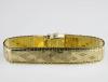zlatý ”hadí” náramek z drobných obdélníkových článků pospojovaných řetízky, v celé ploše rafinované vlnkovité gilošování s optickým efektem, Au 20,07 g/585/1000, Německo, kolem r. 1935, značka chráněného německého designu, dovozový punc do ČSR (lyra); délka 18 cm