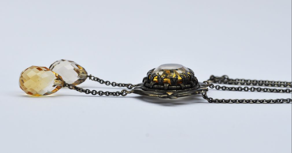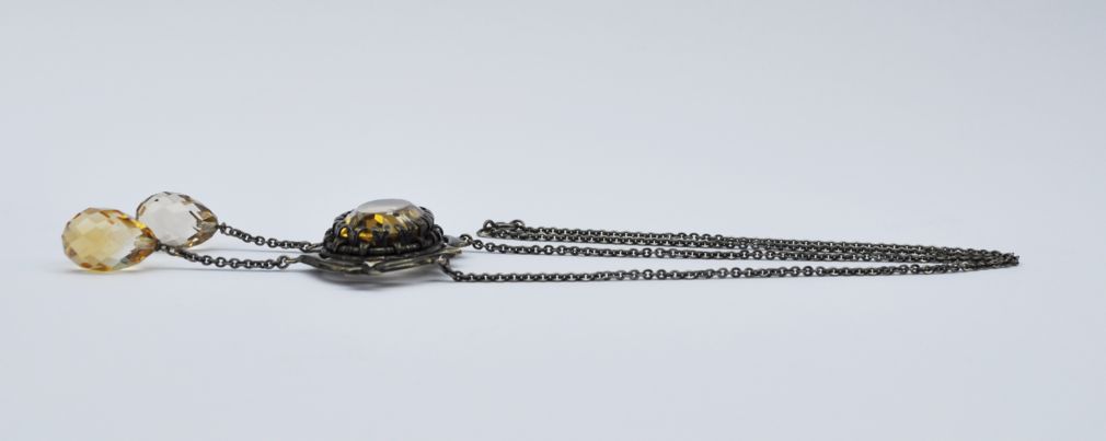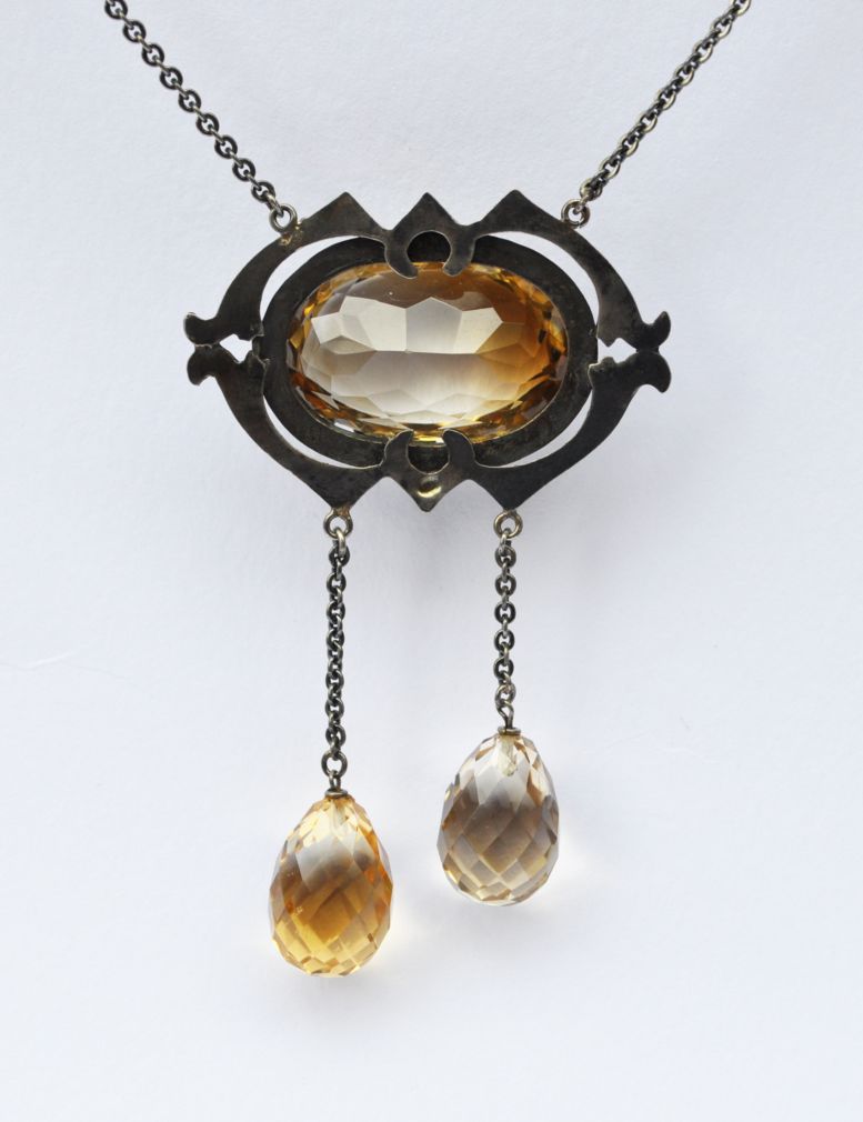 stříbrný kolier s velkými broušenými citríny, Ag 22,24g/925/000, kolem roku 1935, československý punc; délka řetízku bez závěsu 44 cm